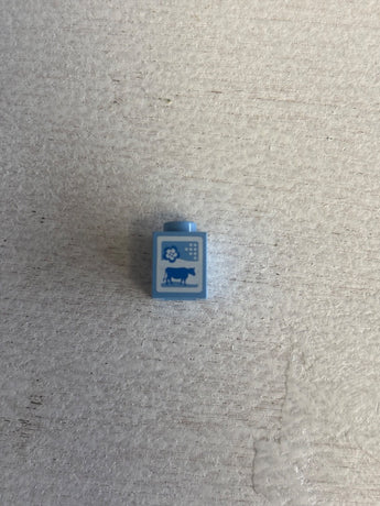 Part 3005pb016 - Brick 1 x 1 with Blue Cow and Flower on White Background Pattern (Milk Carton)