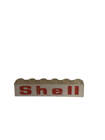 Part 3067pb03 - Brick 1 x 6 without Bottom Tubes with Red 'Shell' on White Background Pattern