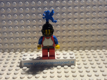 Gebruikt Speelgoed / Collection / Minifig cas280a - Breastplate - Red with Blue Arms, Red Legs with Black Hips, Black Grille Helmet, Blue Dragon Plume