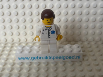 Minifig doc027 - Doctor - EMT Star of Life Button Shirt, White Legs, Reddish Brown Male Hair