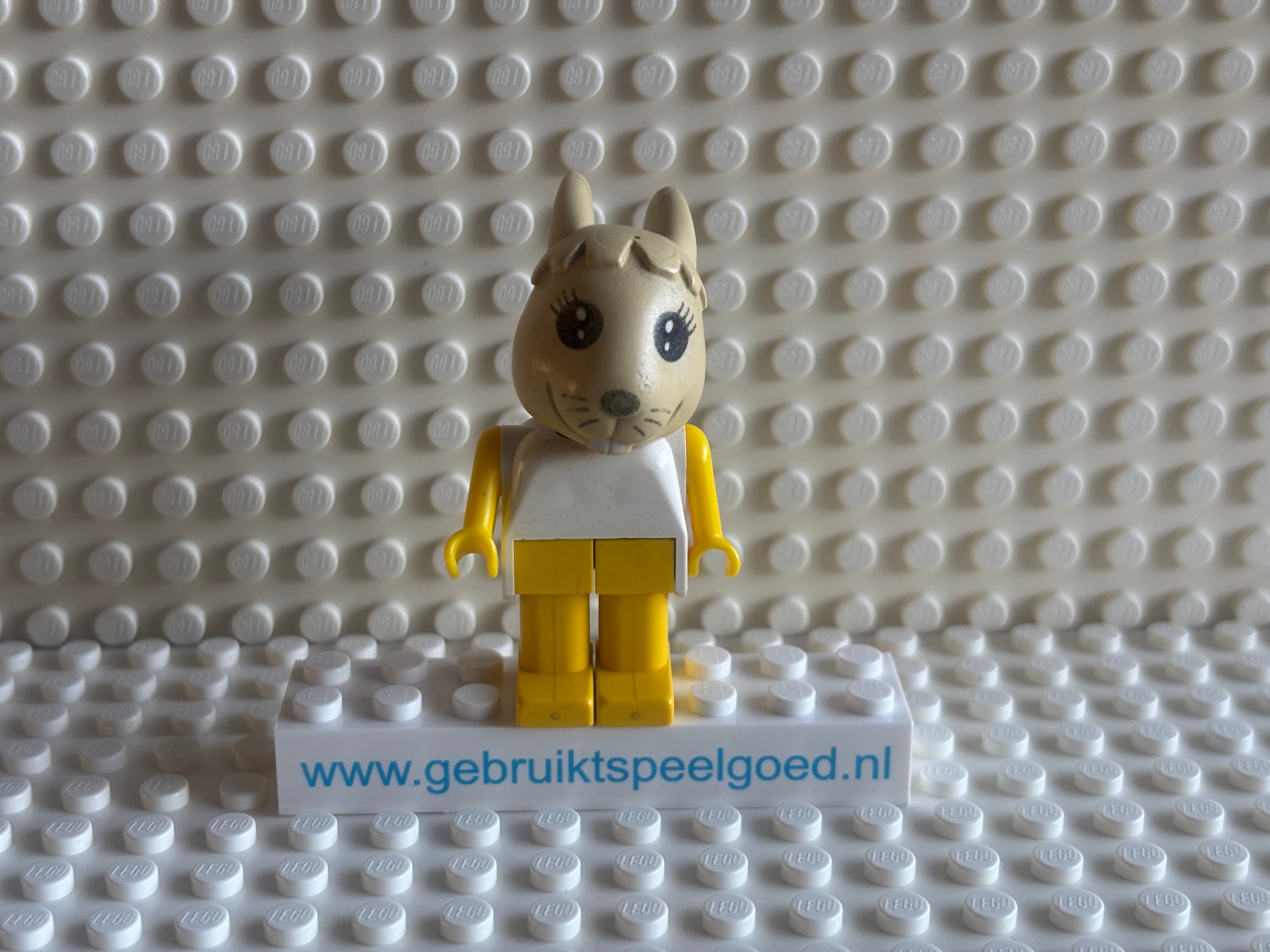 Minifig fab3c - Fabuland Rabbit - Bonnie Bunny, Tan Head, Yellow Legs and Arms, White Top