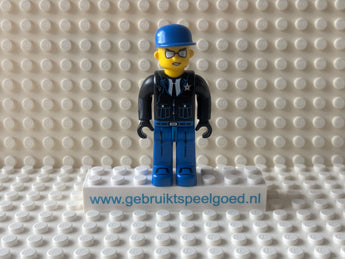 Gebruikt Speelgoed / Collectie / Minifig 4j008 - Police - Blue Legs, Black Jacket, Blue Cap, Sunglasses